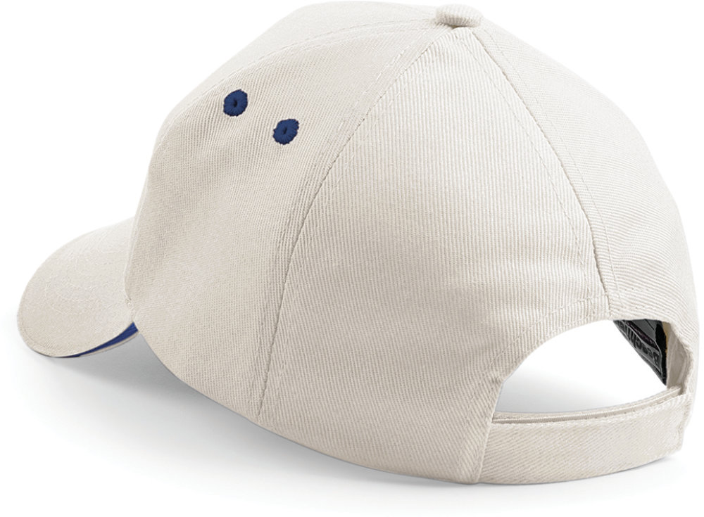 100% cotone drill, modello a 5 pannelli, visiera preformata con sandwich in colore a contrasto, misura regolabile Rip-Strip™.